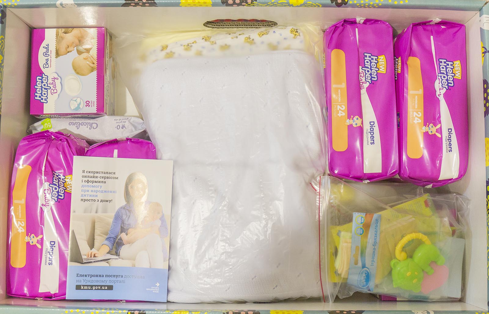 При выписки с роддома на каждого ребенка должны дать «Бебибокс», в нем много полезностей, электронный градусник, памперсы, всякие одеяла, салфетки, детское масло и прочее.